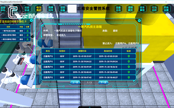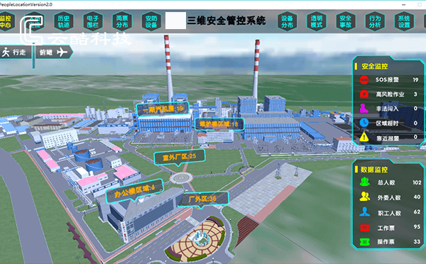 云酷科技結(jié)合集團(tuán)安全需求現(xiàn)狀,建設(shè)人員定位管控系統(tǒng),通過構(gòu)建全廠1:1等比例三維模型和部署UWB高精度定位設(shè)備,實現(xiàn)人、車實時位置監(jiān)控;通過集成電廠各相關(guān)業(yè)務(wù)系統(tǒng),實現(xiàn)安全數(shù)據(jù)的協(xié)同聯(lián)動;通過在集團(tuán)側(cè)部署智慧安全管控平臺,為集團(tuán)提供安全監(jiān)控及大數(shù)據(jù)分析工具。
